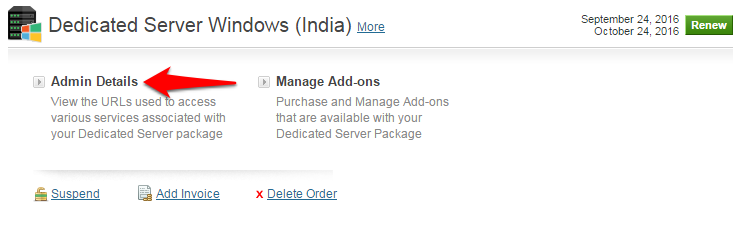 You can perform frequent operations, such as Stopping, Starting and Restarting your server through our web-based control panel. Follow the steps below to access your Dedicated Server Windows Server Management Panel.