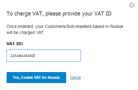 Enter your VAT ID in the provided field and click on Yes, Enable VAT for Russia.