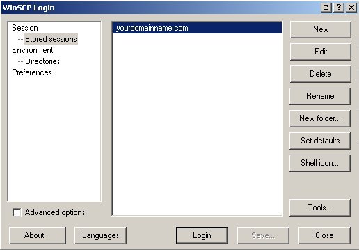 In the Stored sessions section, select yourdomainname.com and click the Login button.
