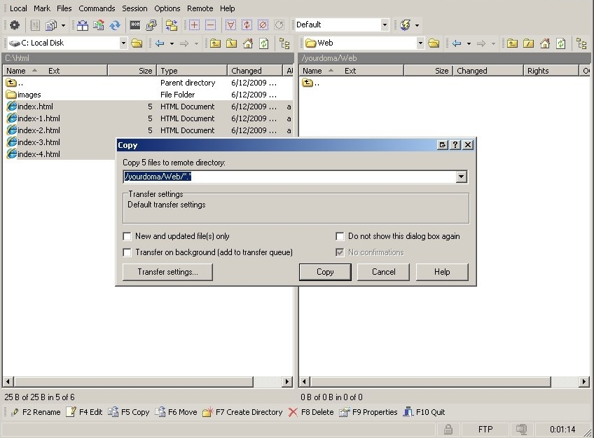 The files will be transferred to the remote server.