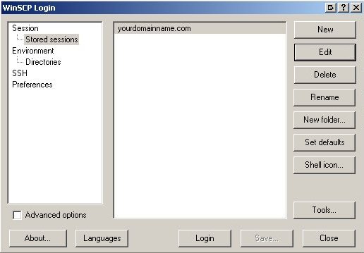 Under Stored sessions, select yourdomainname.com and click the Edit button.